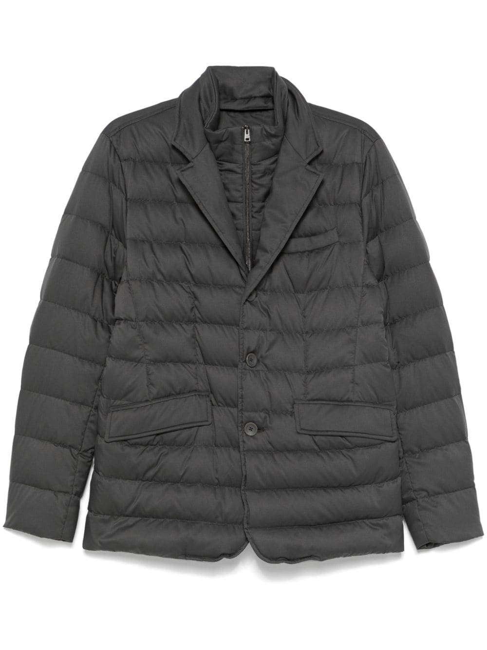 padded jacket Highlights - Medium grey - Down-feather filling - Padded design - Front button and zip fastening - Detachable panels - Quilted - High neck - Notched lapels - Long sleeves - Chest welt pocket - Two side flap pockets - Internal zip-fastening pockets - Straight hem Imported Composition Outer: Polyester 100%, Polyurethane 100% Lining: Polyamide 100%, Polyester 100%, Goose Down 90%, Goose Feather 10% SIZE & FIT Model measurements Height 6 ft 2 in(1.87 m) Bust/Chest 35.82 in(91 cm) Hips 35.03 in(89 cm) Waist 28.74 in(73 cm) FittingInformation Designed for a slim fit, offering a comfortable fit that sits just away from the body The detachable panel offers the preference for a different fit Made from a padded non-stretch fabric, giving it no natural elasticity