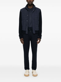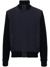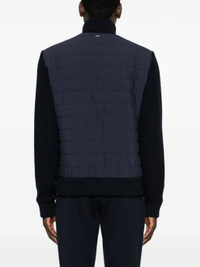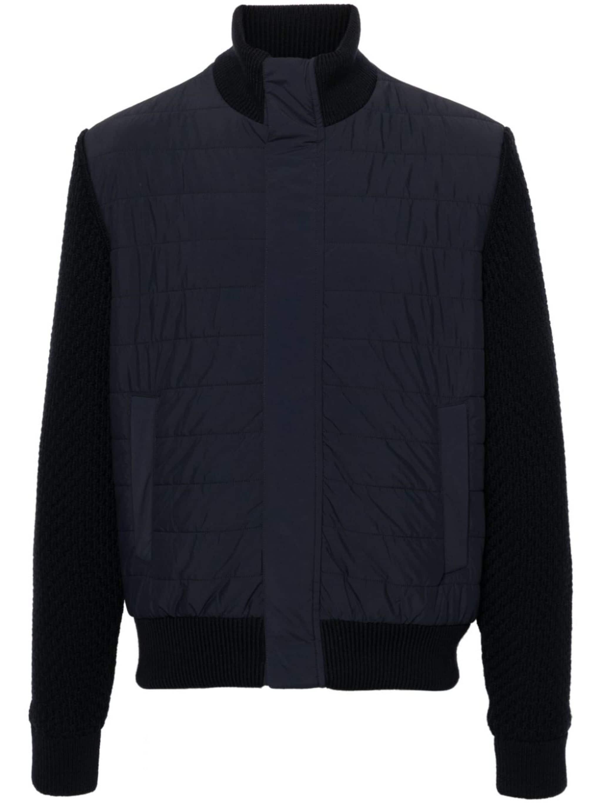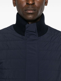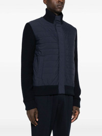 navy blue virgin wool padded quilted panels knitted panels ribbed trim high neck long sleeves two side stud-fastening pockets front press-stud and zip fastening Size & Fit Model Measurements: Height: 1.86 m Bust/Chest: 94.0 cm Hips: 94.0 cm Waist: 74.0 cm Model wears size 50 Fabric and Care Designer Style ID: GI00052UR12431SZ Designer Colour: 9201 BLU Composition: Outer: Elastane 14%, Polyamide 88%; Lining: Virgin wool 100% Washing instructions: Dry Clean Only Made in Romania