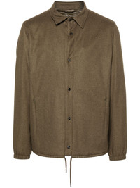 padded shirt jacket Highlights - Khaki - Cashmere-silk blend - Brushed effect - Padded design - Classic collar - Long sleeves - Elasticated cuffs - Front zip fastening pockets - Drawstring hem - Internal zip-fastening pocket - Quilted lining - Logo-engraved buttons - Front press-stud fastening Made in Italy Composition Lining: Polyamide 100%, Polyester 100% Outer: Silk 51%, Cashmere 49% SIZE & FIT Model measurements Height 6 ft 2 in(1.87 m) Bust/Chest 38.18 in(97 cm) Hips 36.61 in(93 cm) Waist 29.13 in(74 cm) FittingInformation Designed for a regular fit, allowing for a comfortably loose fit throughout the body The internal drawstring at the hem allows for fitted preferences Made from a midweight non-stretch fabric This piece fits true to size – take your usual size Washing instructions Dry Clean Only