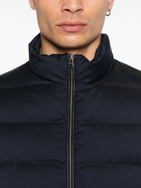 padded zip-front jacket Highlights - Navy blue - Padded design - Zip fastening - High neck - Welt pockets - Long sleeves Imported Composition Outer: Polyester 57%, Wool 43% Lining: Viscose 100%, Polyester 100%, Goose Down 90%, Goose Feather 10% SIZE & FIT Model measurements Height 6 ft 1 in(1.85 m) Bust/Chest 35.82 in(91 cm) Hips 37.79 in(96 cm) Waist 29.13 in(74 cm) Washing instructions Dry Clean Only