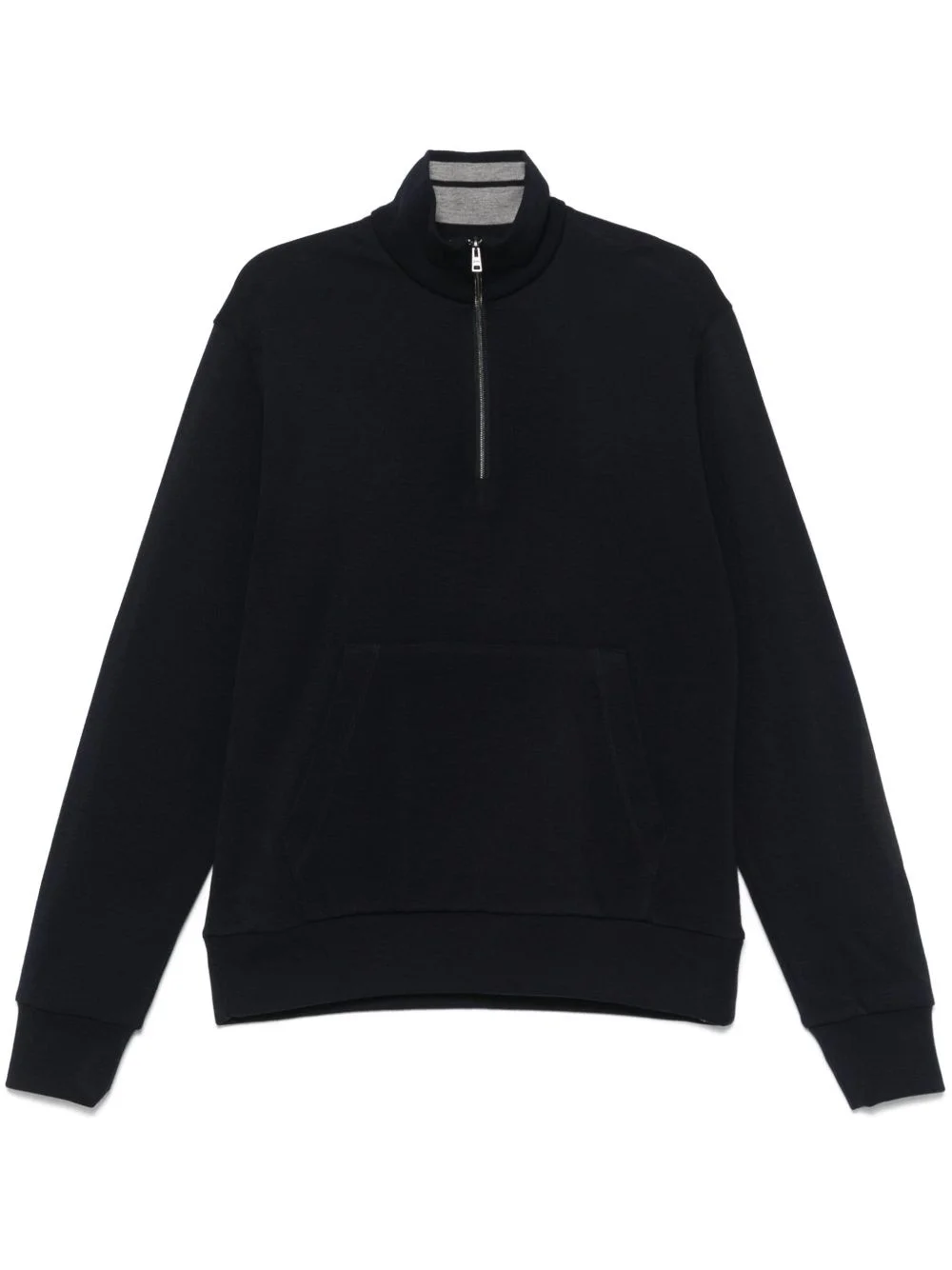 pique sweatshirt Highlights - Navy blue - Short front zip fastening - Front pouch pocket - Stripe detailing - Long sleeves Imported Composition Outer: Virgin Wool 100% Lining: Cotton 100%