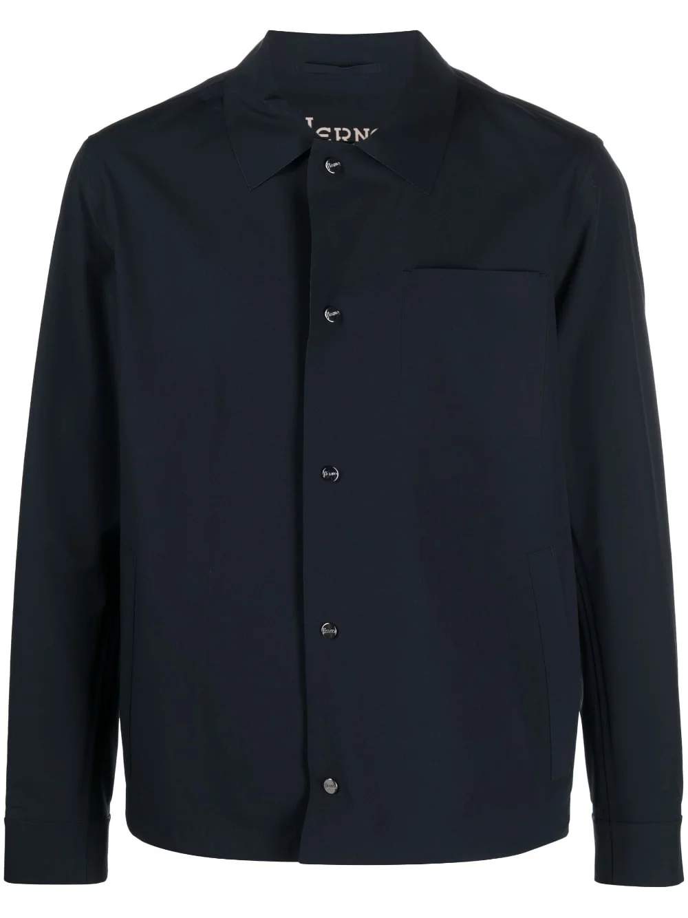 plain shirt jacket Highlights - Oxford blue - Stretch-design - Straight-point collar - Logo-engraved buttons - Front press-stud fastening - Long sleeves with press-stud fastening cuffs - Chest patch pocket - Two side welt pockets - Drawstring hem Imported Composition Polyamide 84%, Elastane 16% SIZE & FIT Model measurements Height 6 ft 2 in(1.88 m) Bust/Chest 36.61 in(93 cm) Hips 35.82 in(91 cm) Waist 27.95 in(71 cm) Measurement CHEST 45.66 in(116 cm) LENGTH 26.18 in(66.5 cm) SLEEVE LENGTH 33.26 in(84.5 cm) Shoulder Width 19.29 in(49 cm) FittingInformation Designed for a regular fit, allowing for a comfortably loose fit throughout the body The internal drawstring at the hem allows for fitted preferences Made from a lightweight stretch fabric, this piece offers elasticity and flexibility when worn This piece fits true to size – take your usual size Washing instructions Hand Wash