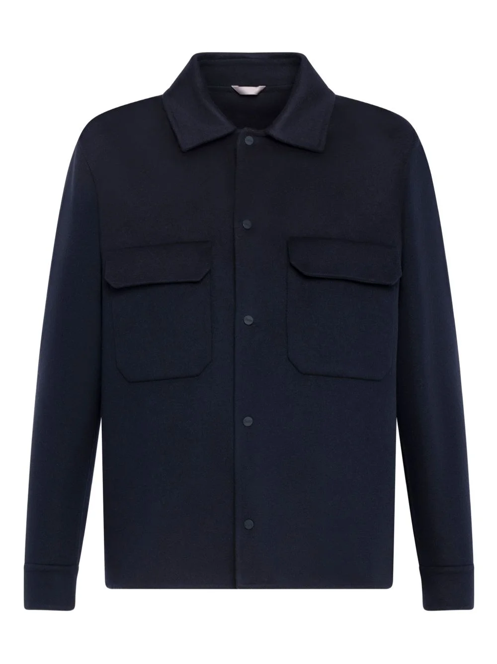 pocket overshirt Highlights - Blue - Point collar - Button fastening - Long sleeves - Two front patch pockets Made in Italy Composition Virgin Wool 100% Washing instructions Read Manufacturer Guidelines