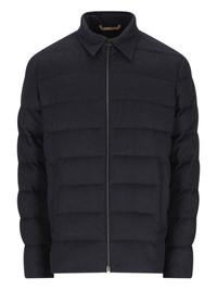 polo-collar padded jacket Highlights - Blue - Polo collar - Zip fastening - Welt pockets - Straight hem Made in Italy Composition Lining: Cupro 100%, Polyamide 100%, Down 90%, Feather 10% Outer: Calf Leather 100%, Silk 51%, Cashmere 49% Washing instructions Read Manufacturer Guidelines