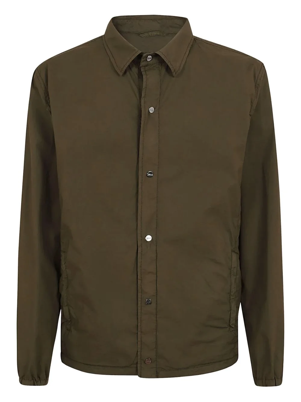 press-stud fastening shirt jacket Highlights - Olive green - Front press-stud fastening - Long sleeves - Elasticated cuffs - Two side welt pockets Imported Composition Cotton 73%, Linen/Flax 27% Washing instructions Read Manufacturer Guidelines