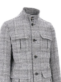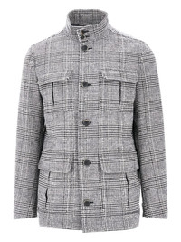 checked single breasted coat Highlights - Grey - Checked pattern - Button fastening - Flap pockets Made in Italy Composition Wool 44%, Polyester 30%, Polyamide 12%, Polycarbonite 11%, Elastane 2%, Other fibres 1% Washing instructions Read Manufacturer Guidelines