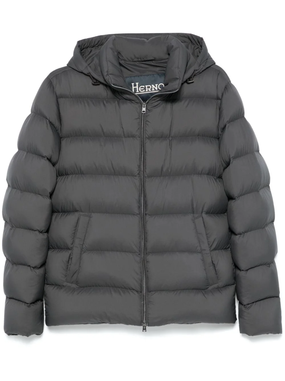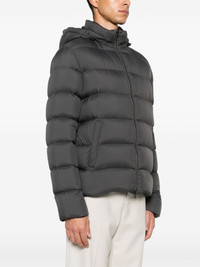 puffer jacket Highlights - Anthracite grey - Matte finish - Front two-way zip fastening - Quilted - Detachable drawstring hood - Stand-up collar - Long sleeves - Two front welt pockets - Down-feather filling - Drawstring hem Imported Composition Lining: Polyamide 100%, Goose Down 90%, Goose Feather 10% Outer: Polyurethane Resin 100% SIZE & FIT Model measurements Height 6 ft 2 in(1.87 m) Bust/Chest 36.22 in(92 cm) Hips 35.43 in(90 cm) Waist 29.13 in(74 cm) FittingInformation Designed for a slim fit, offering a comfortable fit that sits just away from the body The internal drawstring at the hem allows for fitted preferences Made from a padded non-stretch fabric, giving it no natural elasticity