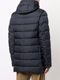 quilted down padded coat Highlights - Blue - Feather down - Quilted - Padded design - Two side flap pockets - Two front flap pockets - Concealed front zip fastening - Classic hood - Long sleeves Imported Composition Lining: Polyamide 100%, Polyester 100%, Feather Down 100% Outer: Polyamide 100% SIZE & FIT Model measurements Height 6 ft 1 in(1.86 m) Bust/Chest 35.43 in(90 cm) Hips 35.43 in(90 cm) Waist 29.92 in(76 cm) Washing instructions Dry Clean Only