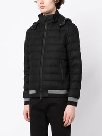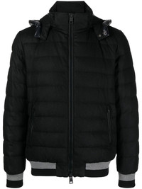 quilted-finish padded jacket black cashmere-silk blend ribbed detailing quilted finish padded design front two-way zip fastening classic hood long sleeves straight hem Made in Italy Composition Silk 51%, Cashmere 49% SIZE & FIT Model measurements Height 6 ft 3 in(1.9 m) Bust/Chest 34.64 in(88 cm) Hips 36.61 in(93 cm) Waist 27.55 in(70 cm) Washing instructions Dry Clean Only