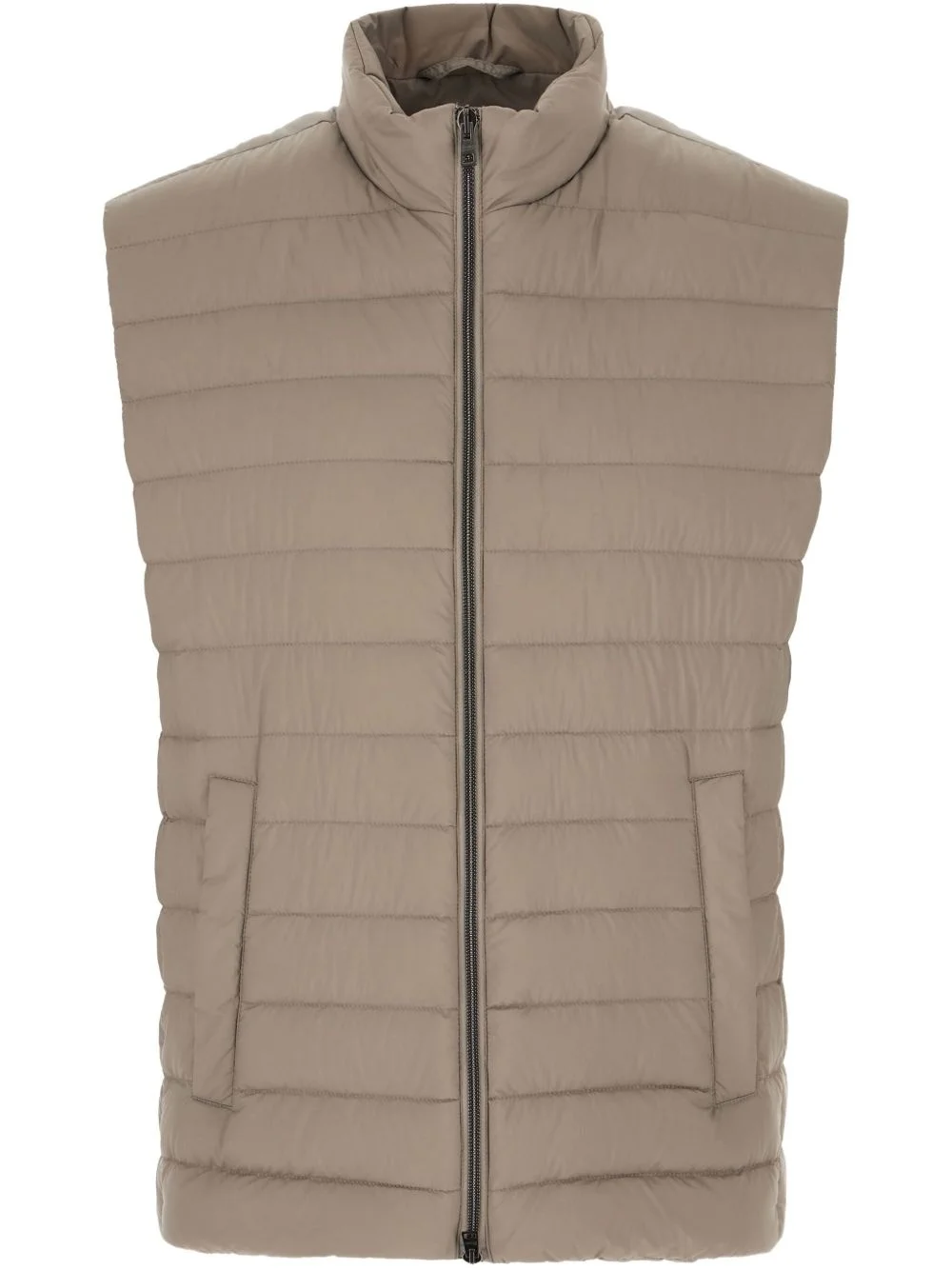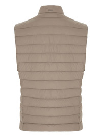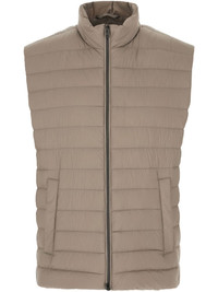 quilted gilet Highlights - Light beige - Front zip fastening - Two side slit pockets - High neck - Sleeveless Made in Italy Composition Outer: Polyurethane 100%, Polyamide 100%, Polyester 61%, Cotton 39% Lining: Polyamide 100%, Polyester 100%, Down 90%, Feather 10%