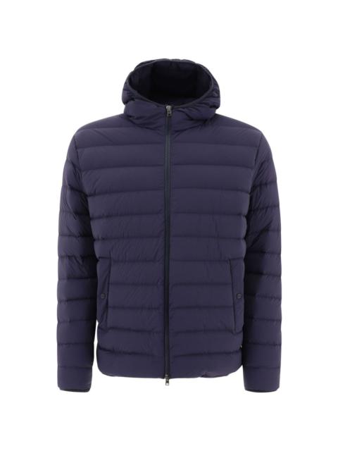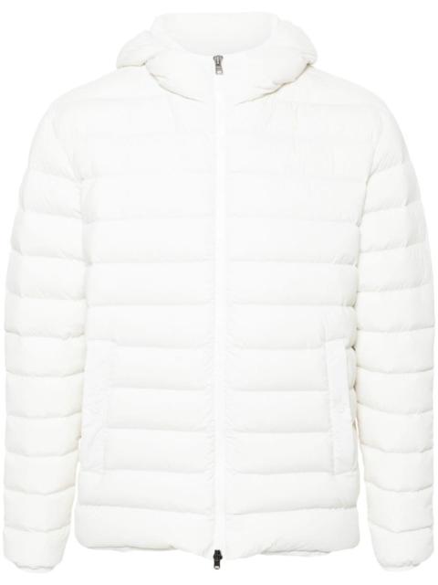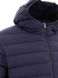 Resort padded jacket Highlights - Oxford blue - Quilted - Stretch-design - Silver-tone logo plaque - High neck - Classic hood - Front two-way zip fastening - Long sleeves with elasticated cuffs - Two press-stud fastening side pockets - Elasticated hem Imported Composition Polyamide 86%, Elastane 14% SIZE & FIT FittingInformation Designed for a relaxed fit, this piece allows for comfort and movement when worn The internal drawstring at the hem allows for fitted preferences Made from a padded stretch fabric, giving it elasticity and a flexible fit