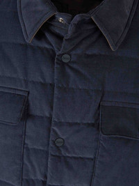 quilted jacket Highlights - Navy blue - Front snap fastening - Two chest pockets - Long sleeves Imported Composition Down 100% Outer: Polyamide 100% Washing instructions Read Manufacturer Guidelines