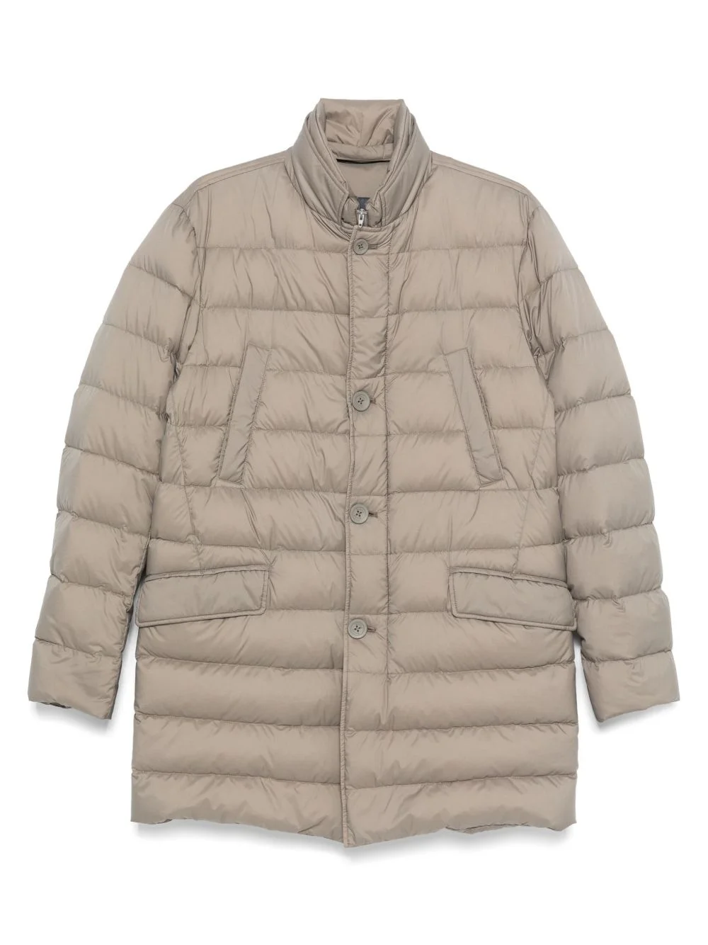 quilted padded coat Highlights - Taupe grey - Front button and zip fastening - Two chest welt pockets - Two side flap pockets - Layered details Imported Composition Outer: Polyurethane 100%, Polyamide 100% Lining: Polyamide 100%, Polyurethane 100%, Goose Down 90%, Goose Feather 10% SIZE & FIT Model measurements Height 6 ft 0 in(1.84 m) Bust/Chest 35.82 in(91 cm) Hips 37 in(94 cm) Waist 28.34 in(72 cm) FittingInformation Designed for a slim fit, offering a comfortable fit that sits just away from the body The detachable panel offers the preference for a different fit Made from a padded non-stretch fabric, giving it no natural elasticity Washing instructions Dry Clean Only