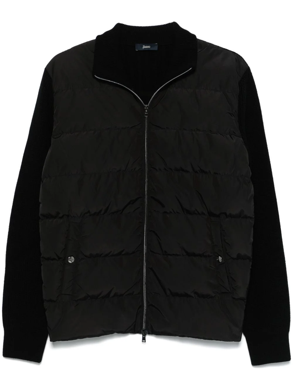 quilted-panelled jacket Highlights - Black - Wool - Knitted construction - Front two-way zip fastening - Stand-up collar - Quilted panelling - Long sleeves - Two side welt pockets - Straight hem Imported Composition Outer: Polyester 100%, Wool 100%, Polyurethane 100% Lining: Polyamide 100%, Down 90%, Feather 10% SIZE & FIT Model measurements Height 6 ft 2 in(1.88 m) Bust/Chest 36.61 in(93 cm) Hips 35.82 in(91 cm) Waist 27.95 in(71 cm) Measurement LENGTH 27.16 in(69 cm) FittingInformation Designed for a slim fit, offering a comfortable fit that sits just away from the body Made from a midweight fabric