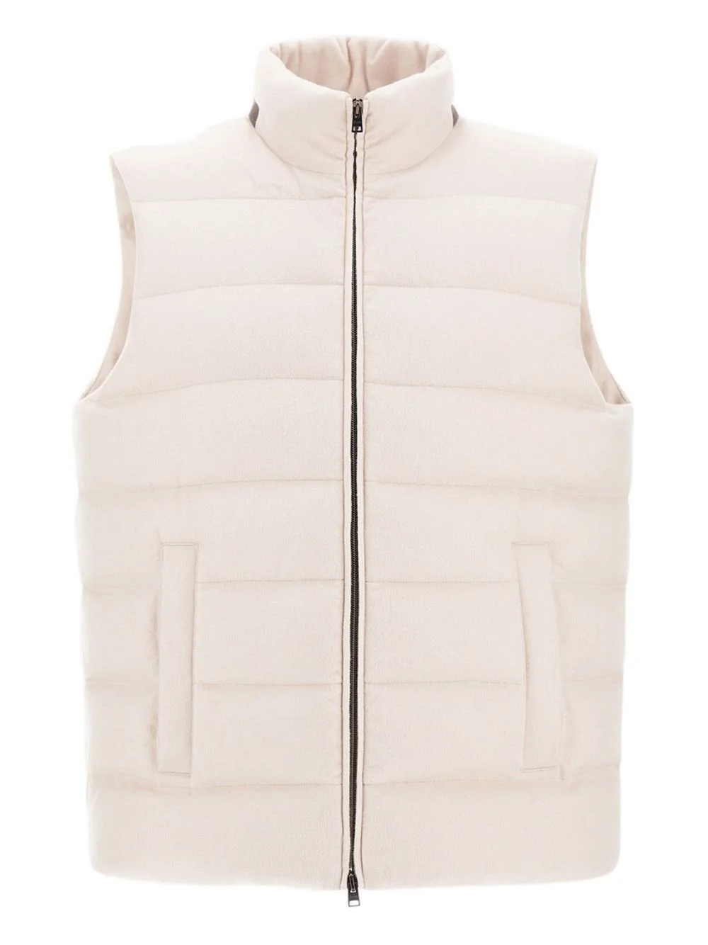 quilted zip-front gilet Highlights - Off-white - Quilted design - Zip fastening - High neck - Sleeveless - Welt pockets Made in Italy Composition Outer: Fabric 100% Washing instructions Read Manufacturer Guidelines