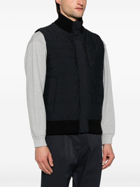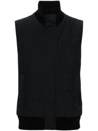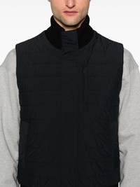 quilted zip-up gilet Highlights - Black - Padded design - Quilted - Logo plaque to the rear - Stand-up contrasting collar - Sleeveless - Two press-stud fastening side pockets - Straight hem - Front press-stud and zip fastening Imported Composition Outer: Virgin Wool 100%, Polyamide 86%, Spandex/Elastane 14% Lining: Polyester 100%, Polyamide 86%, Spandex/Elastane 14% SIZE & FIT Model measurements Height 6 ft 2 in(1.87 m) Bust/Chest 37.79 in(96 cm) Hips 37.79 in(96 cm) Waist 30.31 in(77 cm) FittingInformation Designed for a regular fit, allowing for a comfortably loose fit throughout the body The ribbed hem offers a close, comfortable fit Made from a padded stretch fabric, giving it elasticity and a flexible fit This piece fits true to size – take your usual size