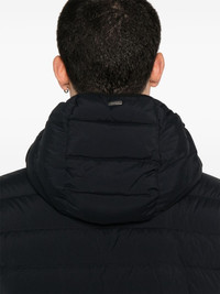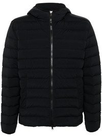 Resort puffer jacket Highlights - Black - Goose down - Padded design - Classic hood - Funnel neck - Front two-way zip fastening - Long sleeves with elasticated cuffs - Two press-stud fastening side pockets - Straight drawstring hem - Full lining Made in Italy Composition Outer: Polyamide 86%, Elastane 14% Lining: Polyamide 86%, Goose Down 70%, Polyester 30%, Elastane 14% SIZE & FIT Model measurements Height 6 ft 1 in(1.85 m) Bust/Chest 35.82 in(91 cm) Hips 37.79 in(96 cm) Waist 29.13 in(74 cm) FittingInformation Designed for a relaxed fit, this piece allows for comfort and movement when worn Made from a padded stretch fabric, giving it elasticity and a flexible fit This piece fits true to size – take your usual size