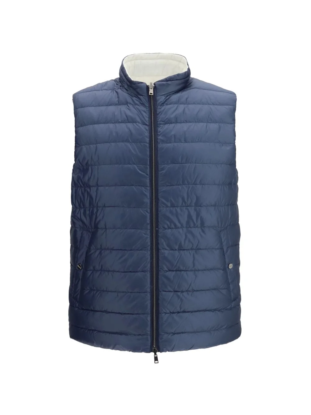 reversible quilted down jacket Highlights - Dark blue - Reversible design - Quilted - Zip fastening - Stand-up collar - Sleeveless Imported Composition Polyamide 100% Washing instructions Read Manufacturer Guidelines