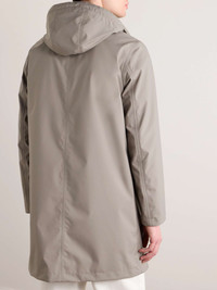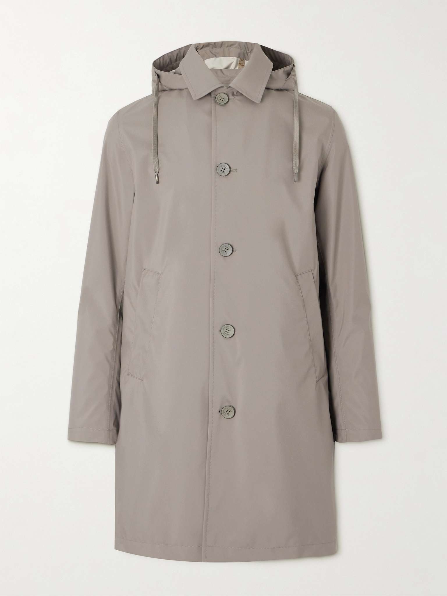 A smart raincoat is a necessity in every wardrobe, no matter your location. Herno's is made from lightweight shell with a drawstring hood and point collar that gives it a tailored look. It has tonal buttons and comes to a mid-thigh length. Size & Fit - Fits true to size. Take your normal size - Designed for a slightly loose fit - Mid-weight, non-stretchy fabric - Model is shown wearing an IT 48 - Model measures: chest 38"/ 96cm, height 6'2"/ 188cm Details & Care - Grey shell - Button fastenings - 100% polyester - Machine wash