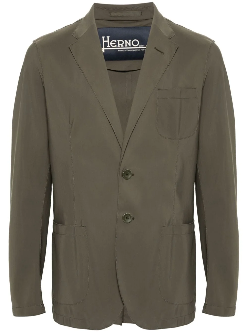 single-breasted blazer Highlights - Khaki green - Stretch-jersey - Seam detailing - Silver-tone logo plaque to the rear - Notched lapels - Long sleeves - Chest patch pocket - Two front patch pockets - Central rear vent - Front button fastening Imported Composition Polyamide 73%, Elastane 27% SIZE & FIT Model measurements Height 6 ft 2 in(1.88 m) Bust/Chest 36.61 in(93 cm) Hips 35.82 in(91 cm) Waist 27.95 in(71 cm) Measurement CHEST 46.06 in(117 cm) LENGTH 31.1 in(79 cm) WAIST 42.51 in(108 cm) SLEEVE LENGTH 37.4 in(95 cm) FittingInformation Designed for a slim fit, offering a comfortable fit that sits just away from the body The vented hem offers movement at the rear Made from a midweight stretch fabric, this piece offers elasticity and flexibility when worn This piece fits true to size – take your usual size Washing instructions Hand Wash