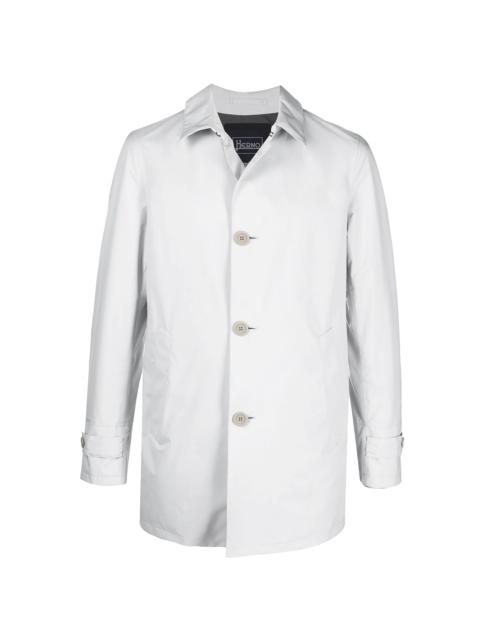 button-up shirt jacket They say it's what's inside that counts. Well, not when it comes to Herno. Boasting a classic collar and a straight cut, this light grey jacket shows that the outside is just as important. Button up, and you'll see what we mean. Imported Composition Polyester 100%, Polytetrafluoroethylene (PTFE) 100%, Polyamide 72%, Spandex/Elastane 28% SIZE & FIT Model measurements Height 5 ft 10 in(1.77 m) Bust/Chest 33.07 in(84 cm) Hips 35.03 in(89 cm) Waist 24.4 in(62 cm) Washing instructions Hand Wash