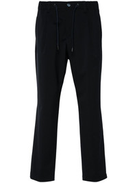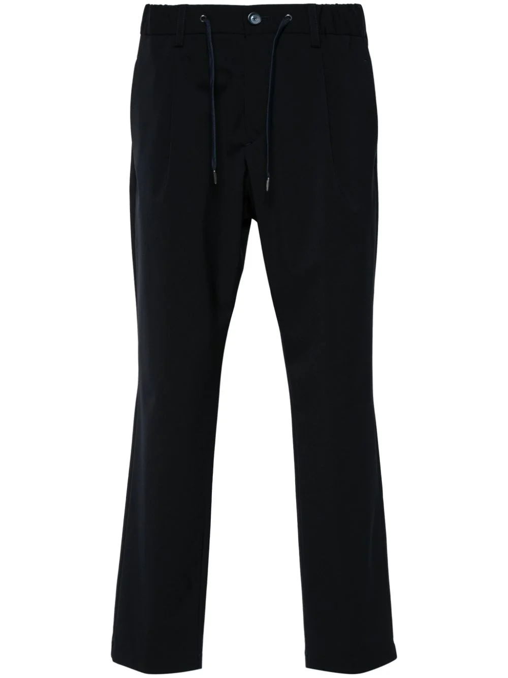 pleat-detail trousers Highlights - Navy blue - Elasticated drawstring waistband - Concealed fly and button fastening - Belt loops - Pleat detailing - Two side inset pockets - Two rear button-fastening jetted pockets - Straight leg Made in Italy Composition Outer: Polyurethane 100%, Polyester 91%, Spandex/Elastane 9% Lining: Cotton 100% SIZE & FIT Model measurements Height 6 ft 1 in(1.85 m) Bust/Chest 38.58 in(98 cm) Hips 37 in(94 cm) Waist 30.31 in(77 cm) FittingInformation Designed for a tapered leg, offering a loose unrestricted fit over the leg with a closer fit towards the ankle Adjust this piece’s waistband to your preference using the drawstring Made from a midweight stretch fabric, this piece offers elasticity and flexibility when worn This piece fits true to size – take your usual size