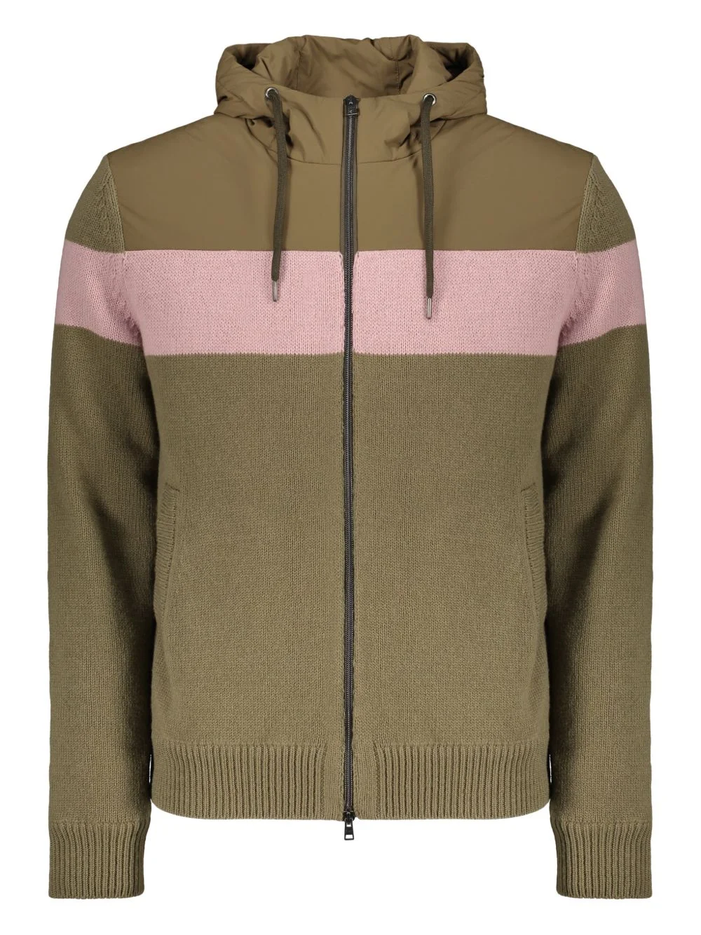 stripe hoddie Highlights - Olive green - Pink stripe - Zip fastening - Long sleeves - Adjustable hood - Drawstring Imported Composition Outer: Wool 100%, Polyamide 86%, Spandex/Elastane 14% Lining: Polyester 100% Washing instructions Read Manufacturer Guidelines
