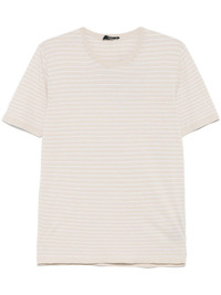 striped T-shirt Highlights - Light beige - Crew neck - Short sleeves Imported Composition Cotton 100% SIZE & FIT Model measurements Height 6 ft 1 in(1.85 m) Bust/Chest 35.82 in(91 cm) Hips 37.79 in(96 cm) Waist 29.13 in(74 cm) FittingInformation Designed for a relaxed fit, this piece allows for comfort and movement when worn Made with a lightweight knit, this piece offers some stretch