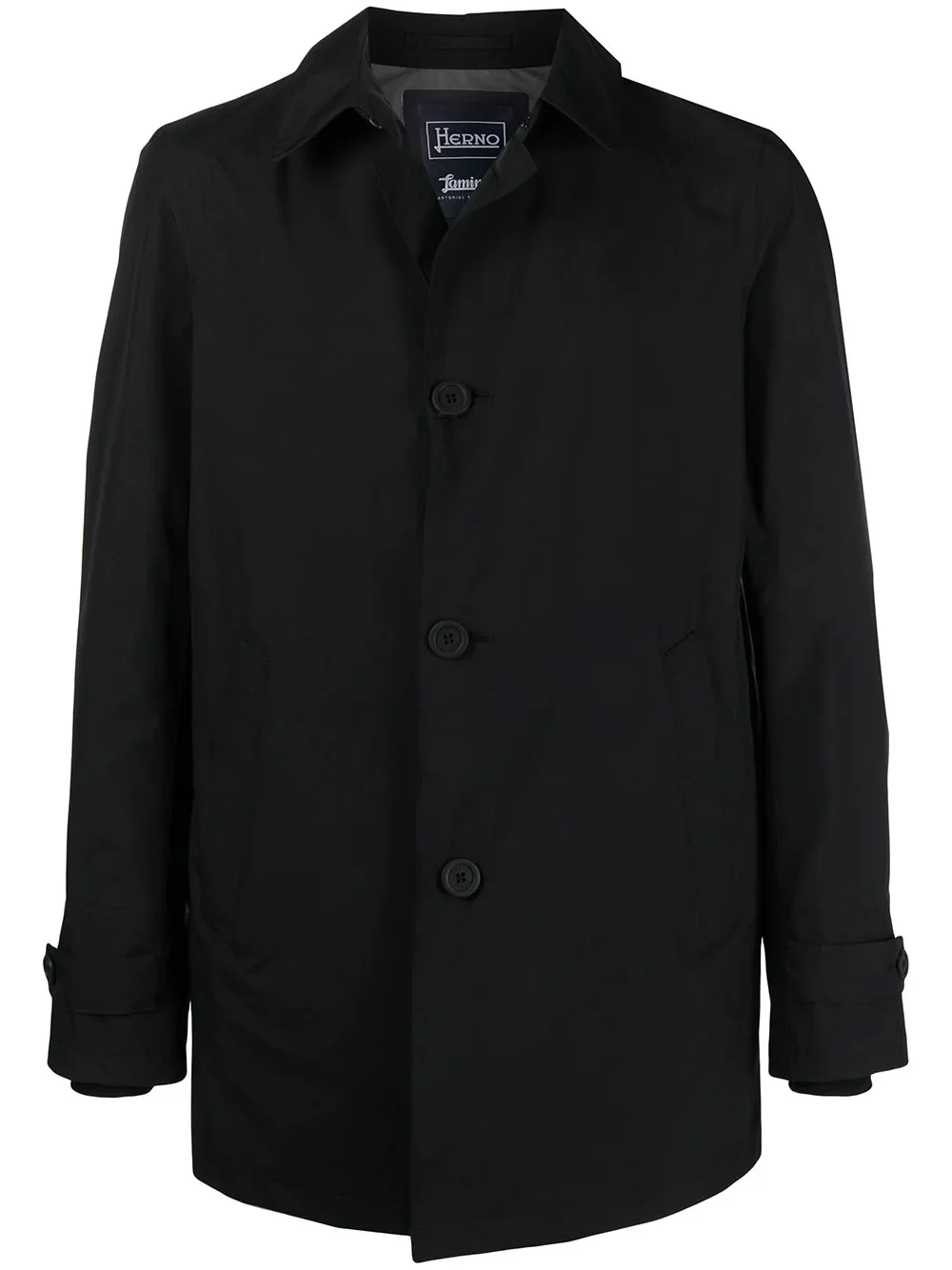 button-up shirt jacket They say it's what's inside that counts. Well, not when it comes to Herno. Boasting a classic collar and a straight cut, this black jacket shows that the outside is just as important. Button up, and you'll see what we mean. Imported Composition Polytetrafluoroethylene (PTFE) 100%, Polyester 100%, Polyamide 72%, Elastane 28% SIZE & FIT Model measurements Height 6 ft 2 in(1.87 m) Bust/Chest 36.41 in(92.5 cm) Hips 37 in(94 cm) Waist 29.52 in(75 cm) FittingInformation This piece fits true to size. We recommend you get your regular size Cut for a loose fit Made with a mid-weight non-stretch fabric Washing instructions Hand Wash