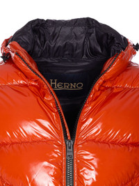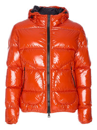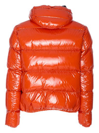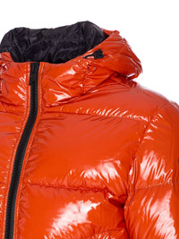 glossy hooded puffer jacket Highlights - Orange - Glossy finish - Front zip fastening - Drawstring hoodie - Down filling - Side patch pockets Made in Italy Composition Lining: Down 80%, Feather 20% Outer: Polyamide 100% SIZE & FIT FittingInformation Designed for a regular fit, allowing for a comfortably loose fit throughout the body The elasticated hem allows for movement and a comfortable fit Made from a padded non-stretch fabric, giving it no natural elasticity Washing instructions Read Manufacturer Guidelines