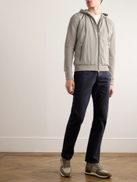 Waffle-Knit Cotton and Shell Hooded Jacket Beige