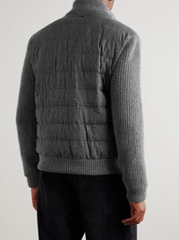 Herno's bomber jacket has been purpose-built in Italy to withstand outdoor conditions. Quilted and padded with insulating down through the body, it's rib-knitted from a substantial wool-blend and has a clean-lined profile that makes it smart enough for workdays. Size & Fit - Fits true to size. Take your normal size - Take the next size up if you wish to achieve a looser fit for layering - Designed for a regular fit - Padded, non-stretchy fabric with knit panels - Model is shown wearing an IT 50 - Model measures: chest 38"/ 96cm, height 6'0"/ 183cm Details & Care - Tonal-grey, white and light-blue wool-blend - Two-way zip fastening - 78% wool, 13% viscose, 5% silk, 3% elastane, 1% linen; trim: 100% wool; filling: 90% down, 10% feathers (Duck); lining: 100% polyester - Fully lined - Dry clean - Designer colour: Iron
