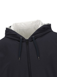 zip hooded jacket Highlights - Blue - Hooded - Zip-fastening - Elasticated hem - Elasticated cuffs - Lined hood - Reversible Made in Italy Composition Polyester 64%, Wool 30%, Spandex/Elastane 6% Washing instructions Read Manufacturer Guidelines