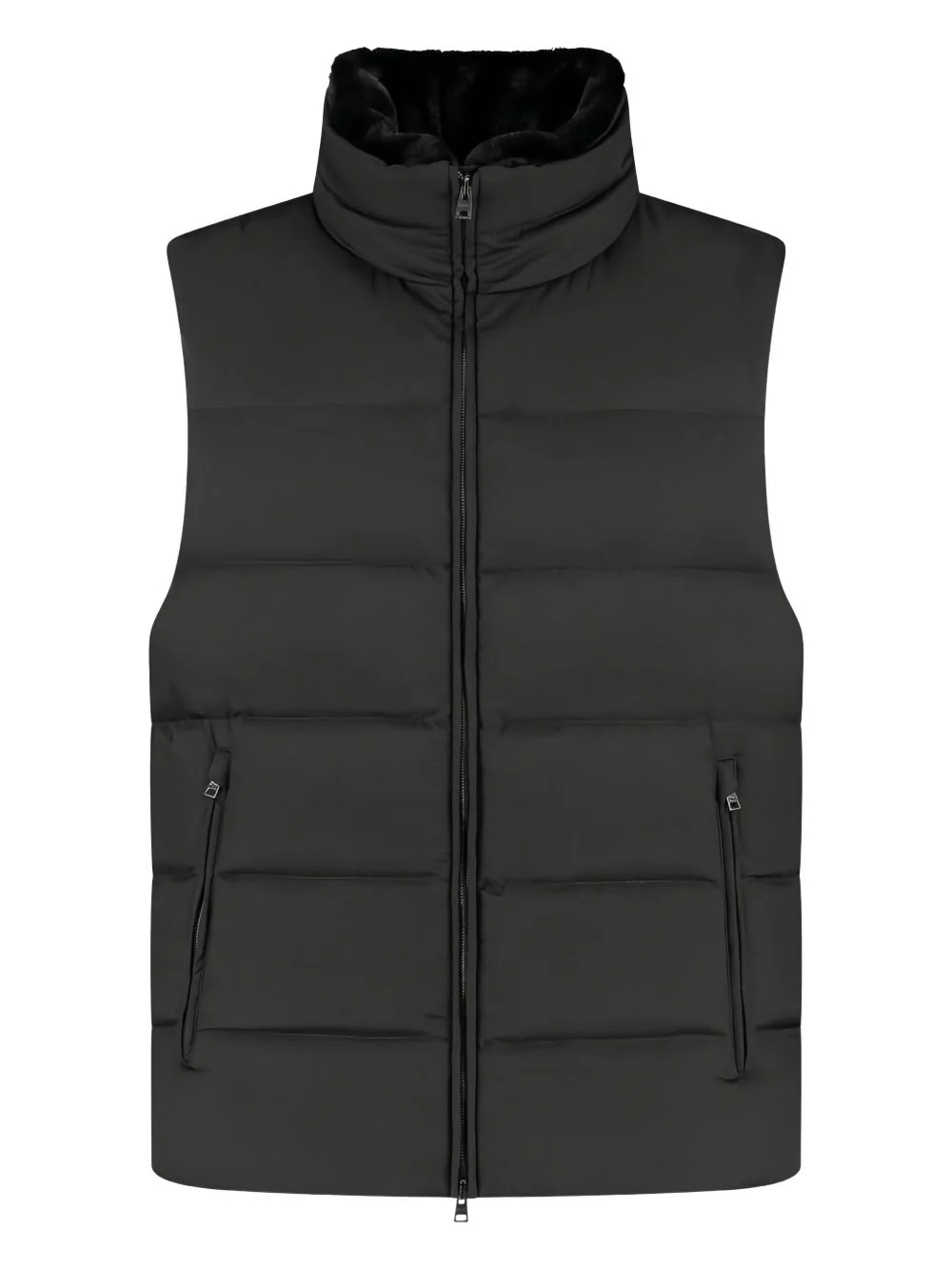 zip-up padded gilet Highlights - Black - Zip fastening - High neck - Sleeveless - Side zip pockets - Padded design Imported Composition Fabric 100% Washing instructions Read Manufacturer Guidelines