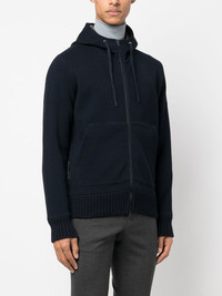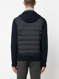 zip-up padded jacket navy blue feather down padded design classic hood front zip fastening long sleeves Made in Italy Composition Outer: Polyurethane 100%, Virgin Wool 100%, Acrylic 33%, Wool 33%, Viscose 28%, Polyamide 5%, Spandex/Elastane 1% Lining: Polyamide 100%, Feather Down 100% SIZE & FIT Model measurements Height 6 ft 2 in(1.87 m) Bust/Chest 38.18 in(97 cm) Hips 36.61 in(93 cm) Waist 29.13 in(74 cm) FittingInformation This piece fits true to size. We recommend you get your regular size Cut for a relaxed fit Made with a mid-weight fabric Washing instructions Dry Clean Only