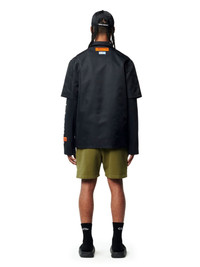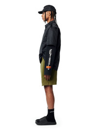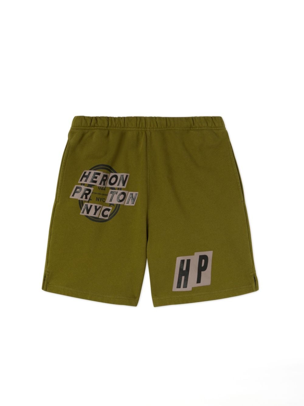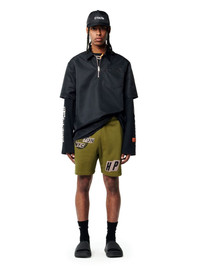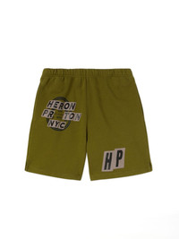 Green sweatshorts with stamp at front and at leg. Orange logo patch at back. The outer fabric of this garment is made with 100% organic cotton material. 100% Organic Cotton 100% Polyester Model Omar Diagne wears size 48 Height: 6’ 1” (185 cm) Waist: 28” (73 cm) Hips: 36” (91 cm) Product ID: HMCI011F22JER0035501