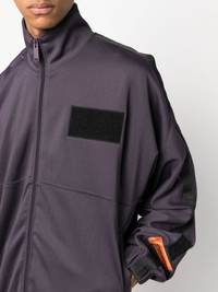 applique track jacket Heron Preston’s Anything Goes collection is an ode to its NYC stomping grounds and its everyday objects. Part of the seasonal drop, this mauve track jacket is appliqued with a tactile terrycloth patch at the chest reminiscent of ordinary household wares. It’s left free of branding, allowing the logo-jacquard striping and signature orange patch to declare its origins. Highlights - Mauve - Jersey knit - Applique detail - Logo patch at the sleeve - Funnel neck - Front zip fastening - Long sleeves - Elasticated cuffs - Two side inset pockets - Elasticated hem Imported Composition Outer: Nylon 100%, Polyester 52%, Cotton 48% Lining: Polyester 100% SIZE & FIT Model measurements Height 6 ft 2 in(1.87 m) Bust/Chest 38.18 in(97 cm) Hips 36.61 in(93 cm) Waist 29.13 in(74 cm) Washing instructions Machine Wash