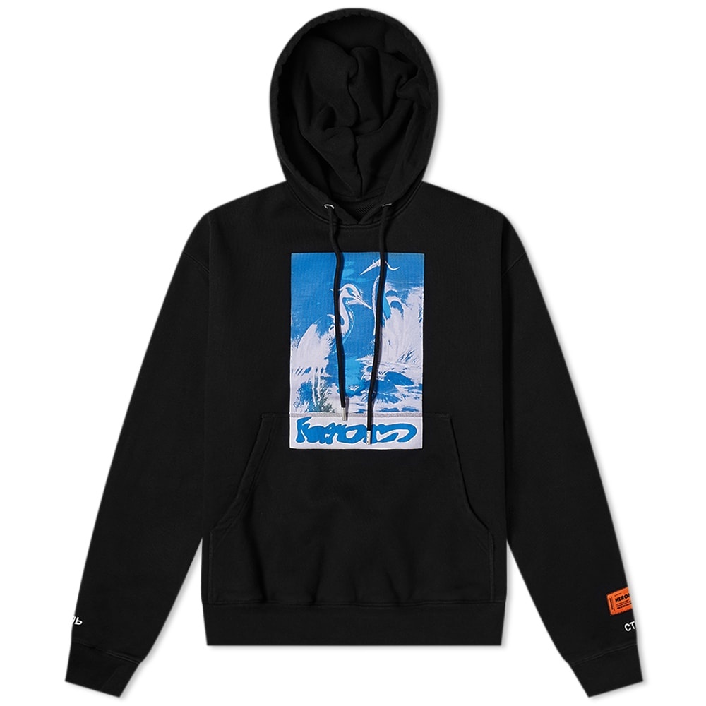 Branded with a blue take on Heron Preston’s instantly recognisable waterfowl graphic, this black hoody has comfort at its core. It’s made using cotton jersey, detailed with a drawstring hood, and completed with Cyrillic lettering embroidered on each cuff. - 100% Cotton - Drawstring Hood - Printed Branding - Pouch Pocket - Ribbed Trims