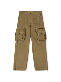 Olive green cargo pants featuring Ex-Ray logo at back. Orange logo patch at leg. Zip closure. 100% Cotton 20% Linen/Flax 80% Cotton Model Omar Diagne wears size 48 Height: 6’ 1” (185 cm) Waist: 28” (73 cm) Hips: 36” (91 cm) Product ID: HMCF011S23FAB0045500
