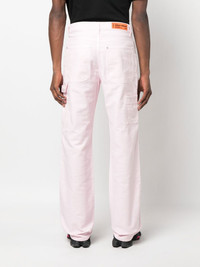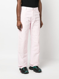 Carpenter straight-leg trousers light pink cotton logo patch to the rear panel detailing straight leg mid-rise classic five pockets concealed fly and button fastening belt loops Made in Italy Composition Outer: Cotton 100% Lining: Cotton 100% SIZE & FIT Model measurements Height 6 ft 2 in(1.88 m) Bust/Chest 36.61 in(93 cm) Hips 35.82 in(91 cm) Waist 27.95 in(71 cm) FittingInformation This piece fits true to size. We recommend you get your regular size Cut for a relaxed fit Made with a mid-weight non-stretch fabric Washing instructions Machine Wash