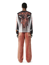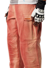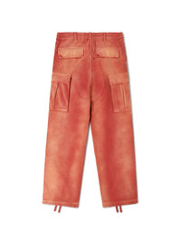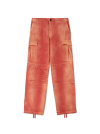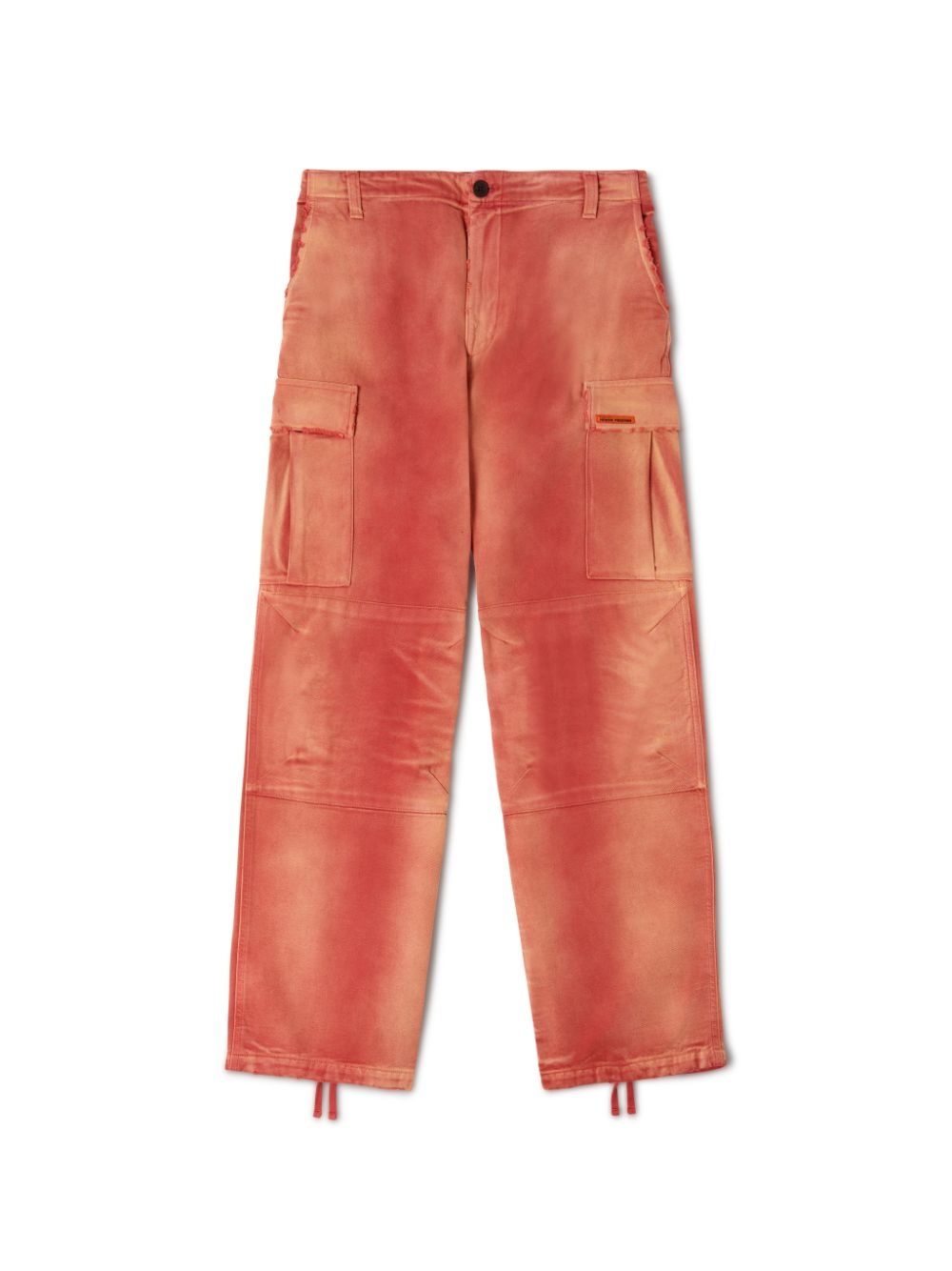 distressed-effect cotton cargo trousers from HERON PRESTON featuring coral red, cotton, denim, distressed effect, panel detailing, wide leg, belt loops, concealed fly and button fastening, two side inset pockets, two side cargo pockets and two rear flap pockets. 100% Cotton 100% Cotton Bust 87cm Height 187cm Hips 93cm Waist 73cm Product ID: HMCF012F23FAB0012500