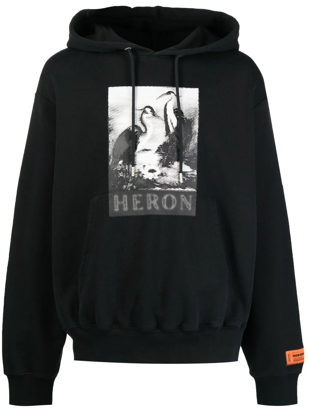 Halftone Heron print hoodie This Heron Preston black hoodie stands out thanks to the grayscale graphic of a heron on the front. The design is crafted from cotton and detailed with the usual orange patch at the sleeve. Imported Composition Cotton 100% SIZE & FIT Model measurements Height 6 ft 3 in(1.9 m) Bust/Chest 34.64 in(88 cm) Hips 36.61 in(93 cm) Waist 27.55 in(70 cm) FittingInformation This piece fits true to size. We recommend you get your regular size Cut for a loose fit Made with a mid-weight fabric Washing instructions Machine Wash