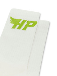 HP Fly logo-intarsia socks from HERON PRESTON featuring white, grass green, organic cotton blend, ribbed detailing, stretch-design, intarsia-knit logo, elasticated ankles and authenticity QR code. Be sure before opening, as socks and hosiery can only be returned in their original, unopened packaging.. This item is made from at least 50% organic materials.. Learn more about what makes a product Conscious on our Conscious Criteria page. 80% Organic Cotton 5% Elastane 15% Polyamide Bust 0cm Height 0cm Hips 0cm Waist 0cm Product ID: HMRA008F23KNI0030155