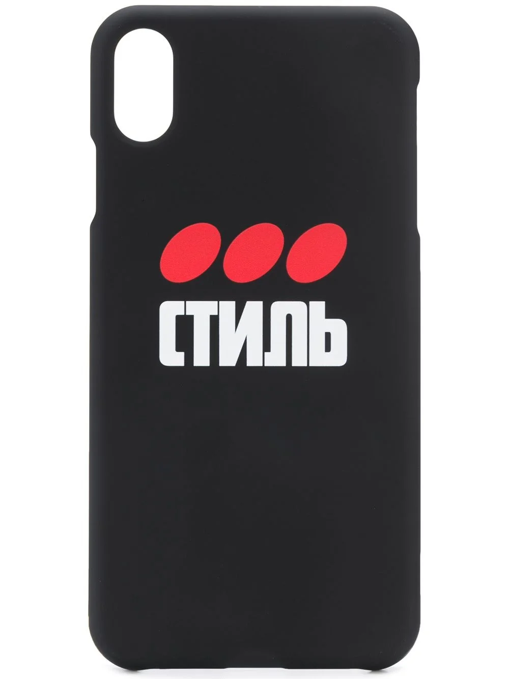 iPhone XS case Black leather iPhone XS case from Heron Preston featuring a print to the front. Imported Composition Acetate 100%