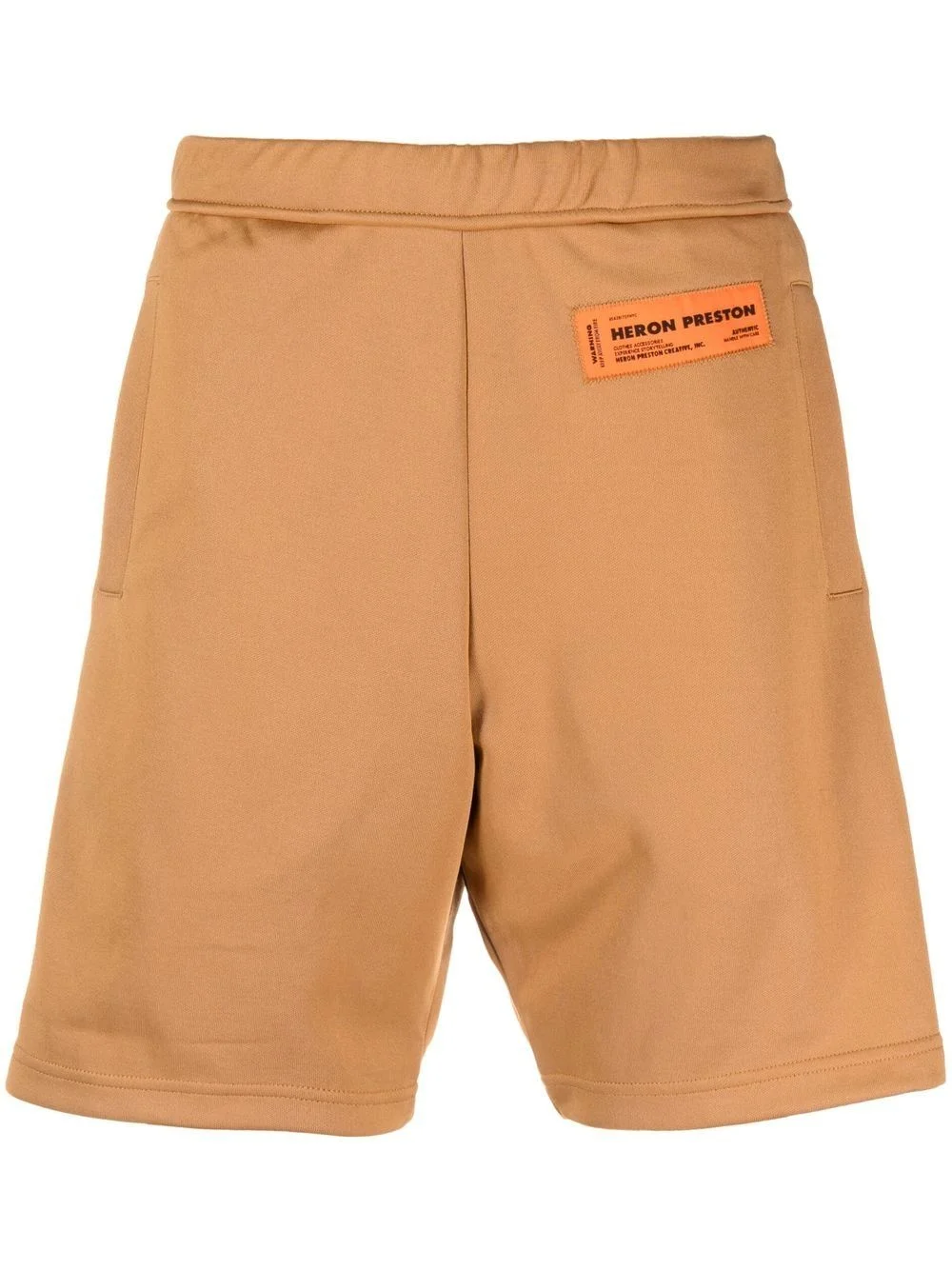 logo-patch deck shorts tobacco brown/orange jersey fleece logo patch to the front elasticated waistband stripe trim two side slit pockets Imported Composition Polyester 55%, Cotton 45% SIZE & FIT Model measurements Height 6 ft 2 in(1.89 m) Bust/Chest 37.79 in(96 cm) Hips 37 in(94 cm) Waist 29.92 in(76 cm) FittingInformation This piece fits true to size. We recommend you get your regular size Designed for a slim fit at the waist and loose over the leg Made with a mid-weight fabric