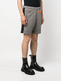 logo-patch track shorts Heron Preston takes a minimalist approach to casualwear with these shorts. The track-style pair is detailed with an orange logo patch leaving an understated and branded finish. Highlights - Grey - Cotton blend - Logo patch to the front - Elasticated waistband - Slip pockets to the sides Imported Composition Polyester 52%, Cotton 48% SIZE & FIT Model measurements Height 6 ft 1 in(1.86 m) Bust/Chest 37.4 in(95 cm) Hips 36.22 in(92 cm) Waist 29.52 in(75 cm) FittingInformation Designed for relaxed fit, offering a comfortable loose fit over the leg Adjust this piece’s waistband to your preference using the drawstring Made from a midweight non-stretch fabric, this piece offers minimal elasticity when worn This piece fits true to size – take your usual size Washing instructions Machine Wash