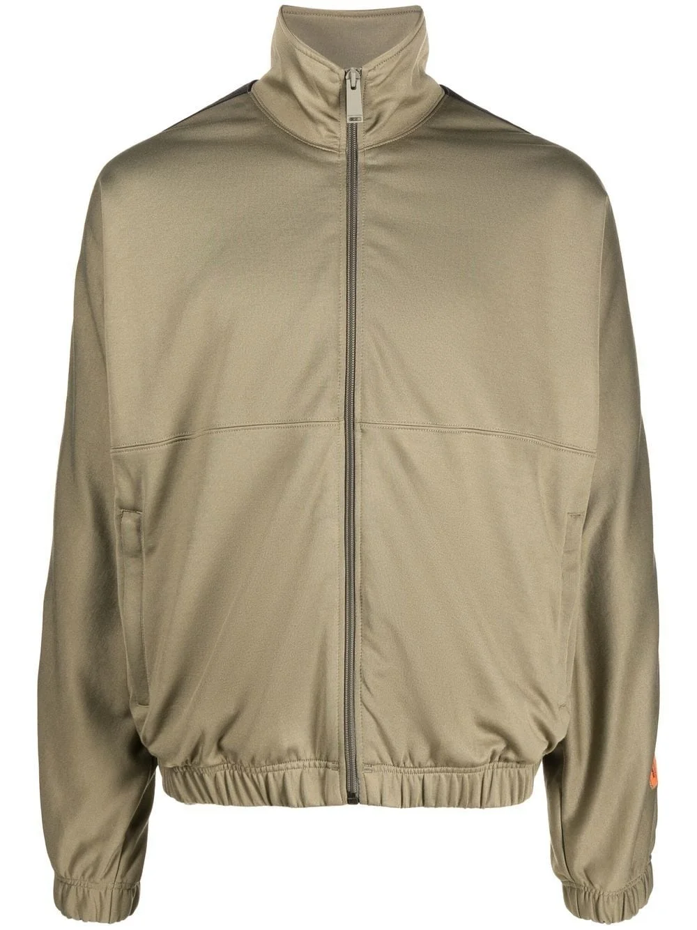 embroidered logo track top olive green high neck front zip fastening embroidered logo at the sleeve two diagonal pockets to the sides elasticated cuffs elasticated hem Imported Composition Outer: Polyester 55%, Cotton 45% Lining: Polyester 100% SIZE & FIT Model measurements Height 6 ft 2 in(1.87 m) Bust/Chest 38.18 in(97 cm) Hips 36.61 in(93 cm) Waist 29.13 in(74 cm) FittingInformation This piece fits true to size. We recommend you get your regular size Cut for a loose fit Made with a mid-weight fabric Washing instructions Machine Wash