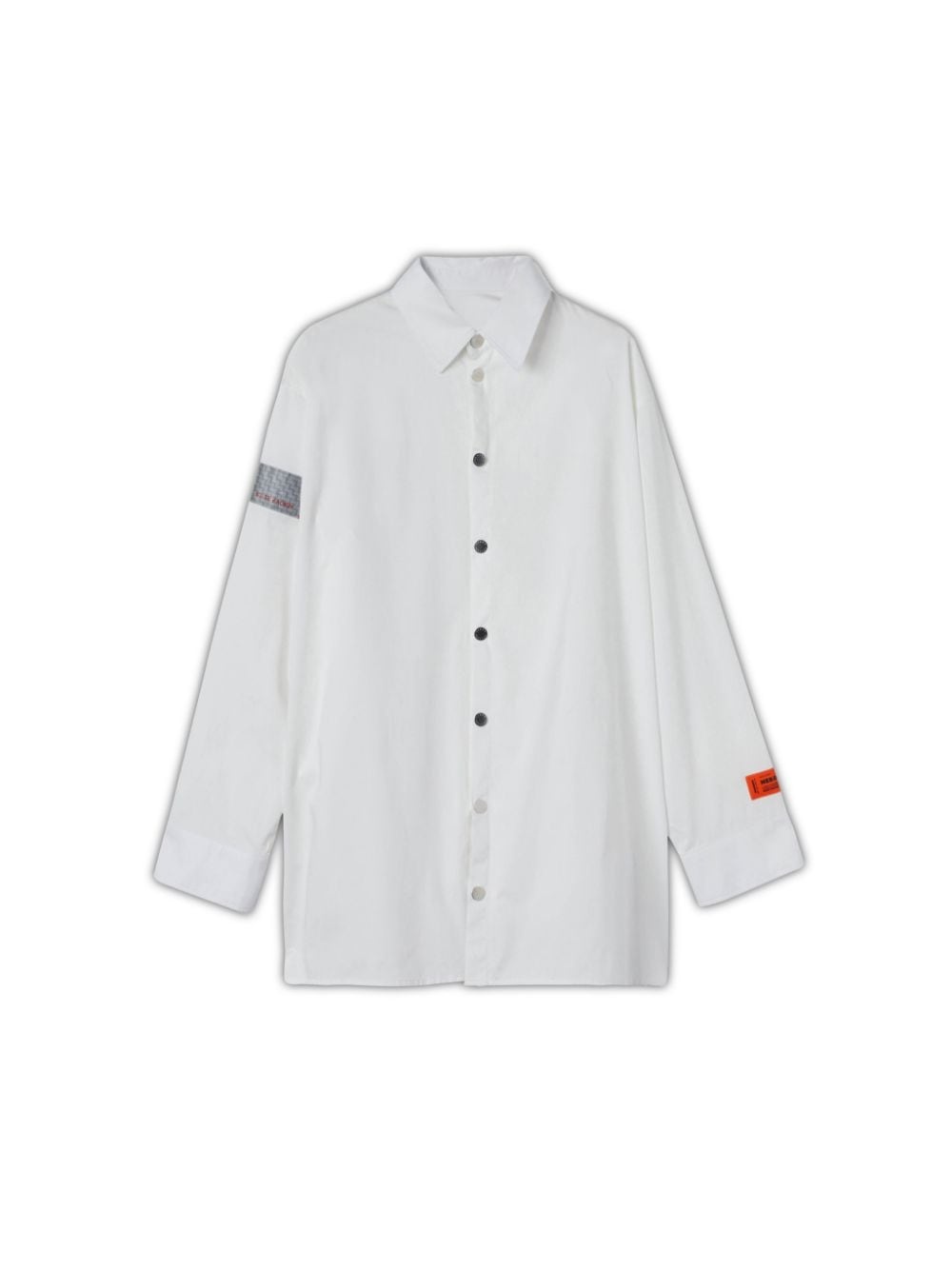 Popeline shirt in white. Red and gray patch at sleeve and back. Orange logo patch at sleeve. Spread collar. Button up closure. 100% Cotton Model Omar Diagne wears size M Height: 6’ 1” (185 cm) Chest: 33” (84 cm) Waist: 28” (73 cm) Product ID: HMGA038F22FAB0010300