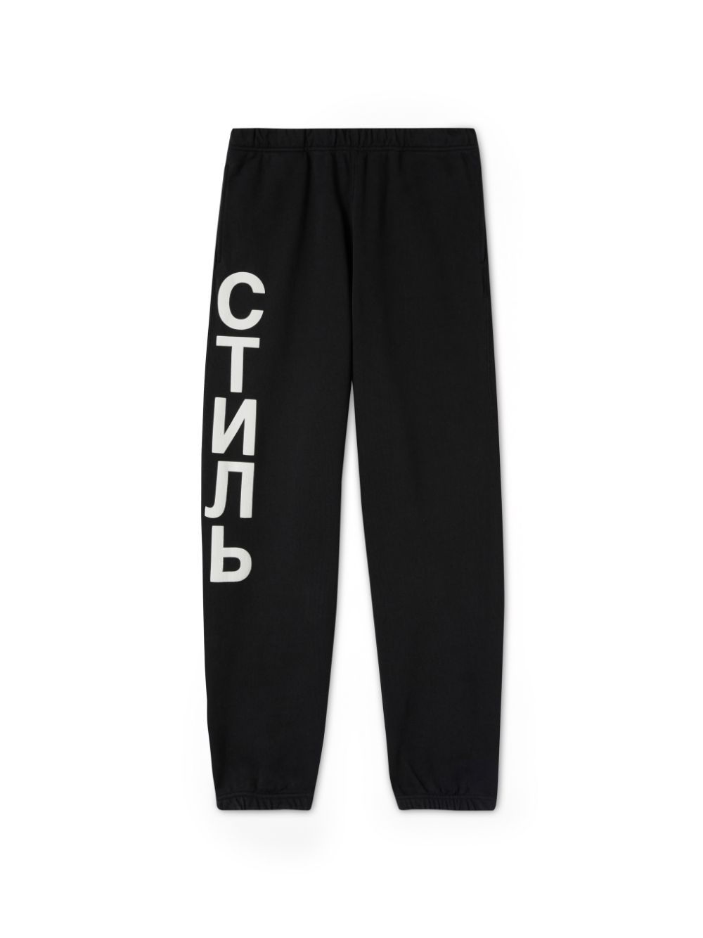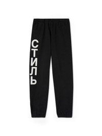 Black СТИЛЬ-logo track pants featuring logo print to the side. Elasticated waistband. The outer fabric of this garment is made with 100% organic cotton material. 100% Cotton 100% Polyester Model Omar Diagne wears size 48 Height: 6’ 1” (185 cm) Waist: 28” (73 cm) Hips: 36” (91 cm) Product ID: HMCH027C99JER0011001