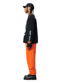 Orange СТИЛЬ-logo track pants featuring logo print to the side. Elasticated waistband. The outer fabric of this garment is made with 100% organic cotton material. 100% Cotton 100% Polyester Model Omar Diagne wears size 48 Height: 6’ 1” (185 cm) Waist: 28” (73 cm) Hips: 36” (91 cm) Product ID: HMCH027C99JER0012201